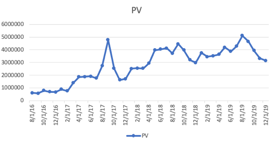 Page Views, Unique Views and visits have all increased over a 3 year span.
