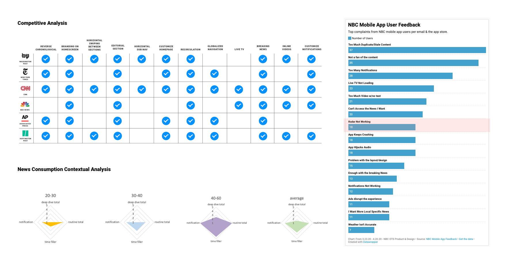 Combining qualitiative and quantitative data, direct user feedback and content consumption patterns sets the context for the redesign. We want to make sure we are solving the right problems.